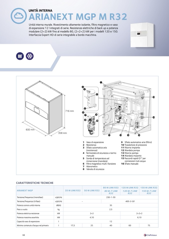 à interna murale. Rivestimento altamente isolante, filtro magnetico e vaso