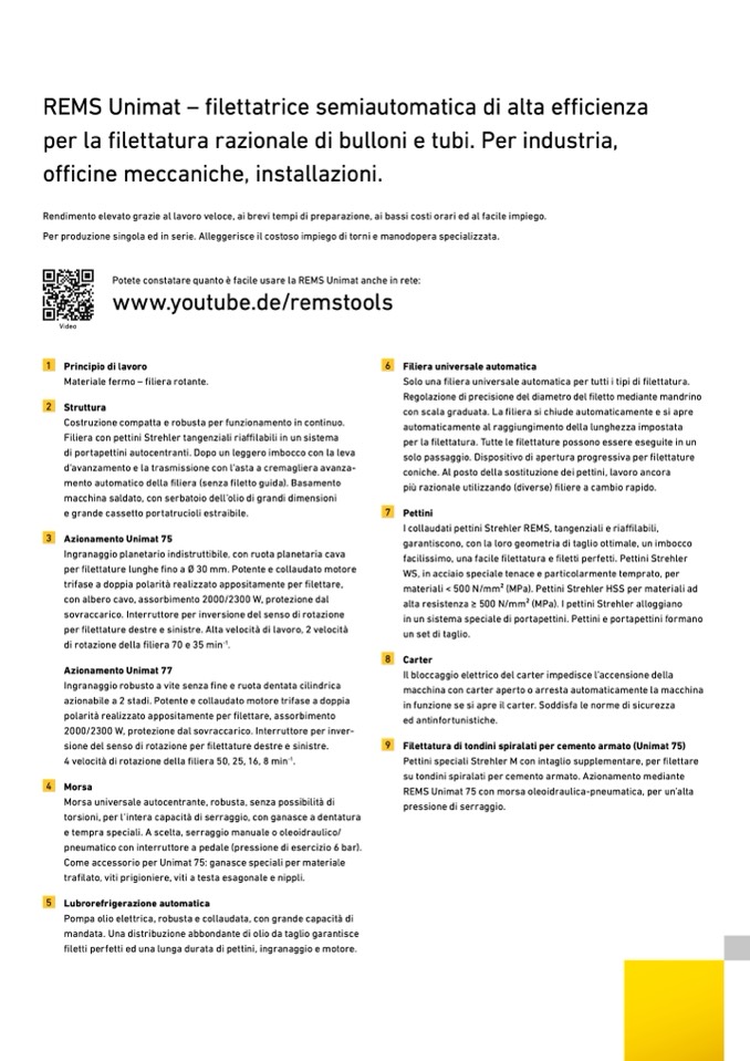 9 Filettatura di tondini spiralati per cemento armato (Unimat 75)