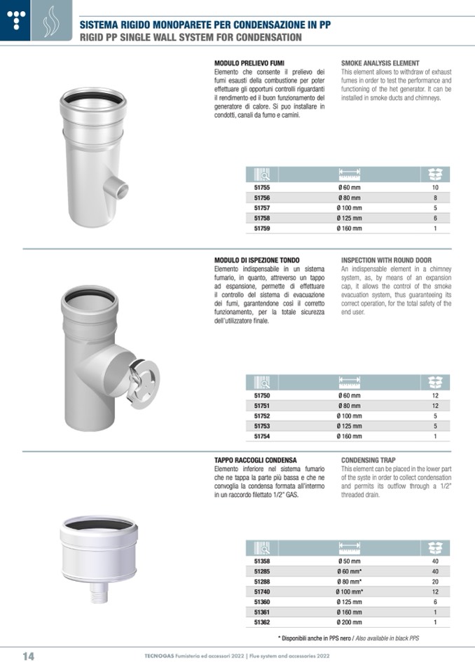 TECNOGAS Fumisteria ed accessori 2022 | Flue system and accessories 2022
