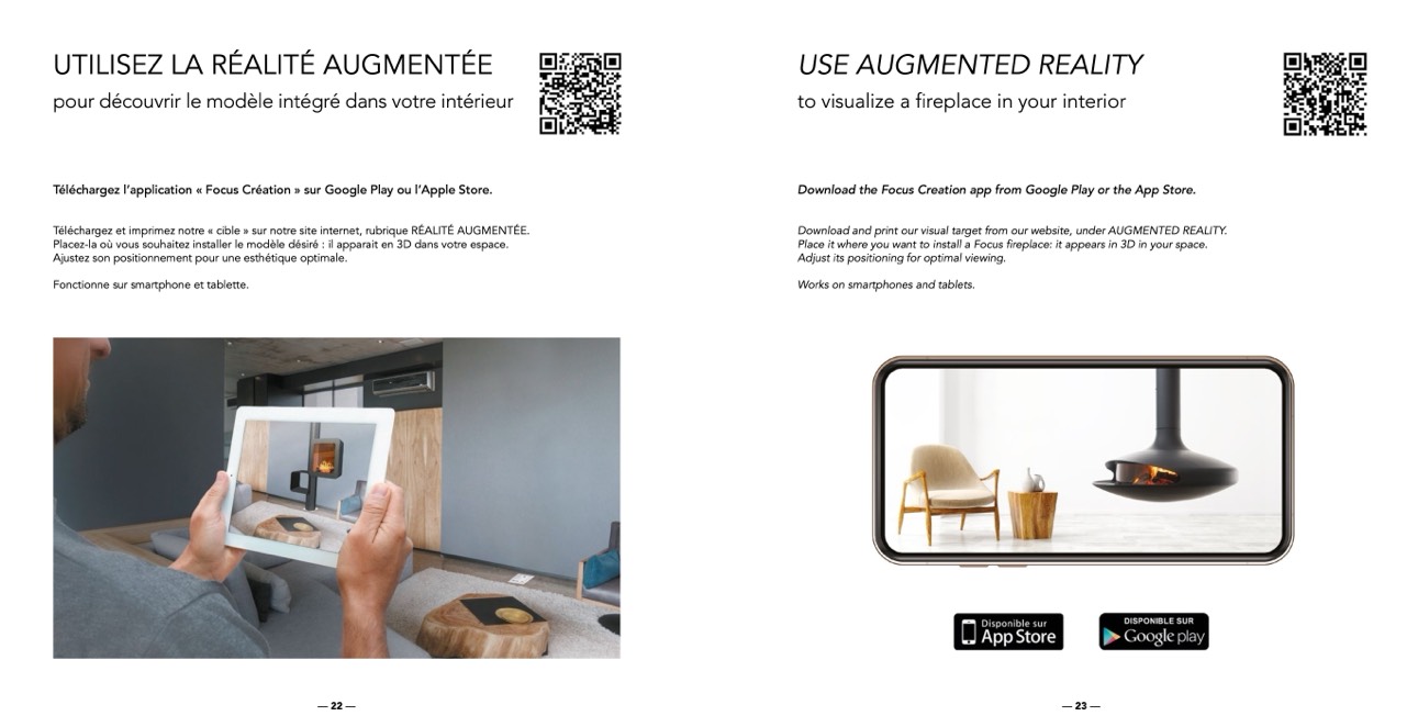Place it where you want to install a Focus fireplace: it appears in 3D in your space.