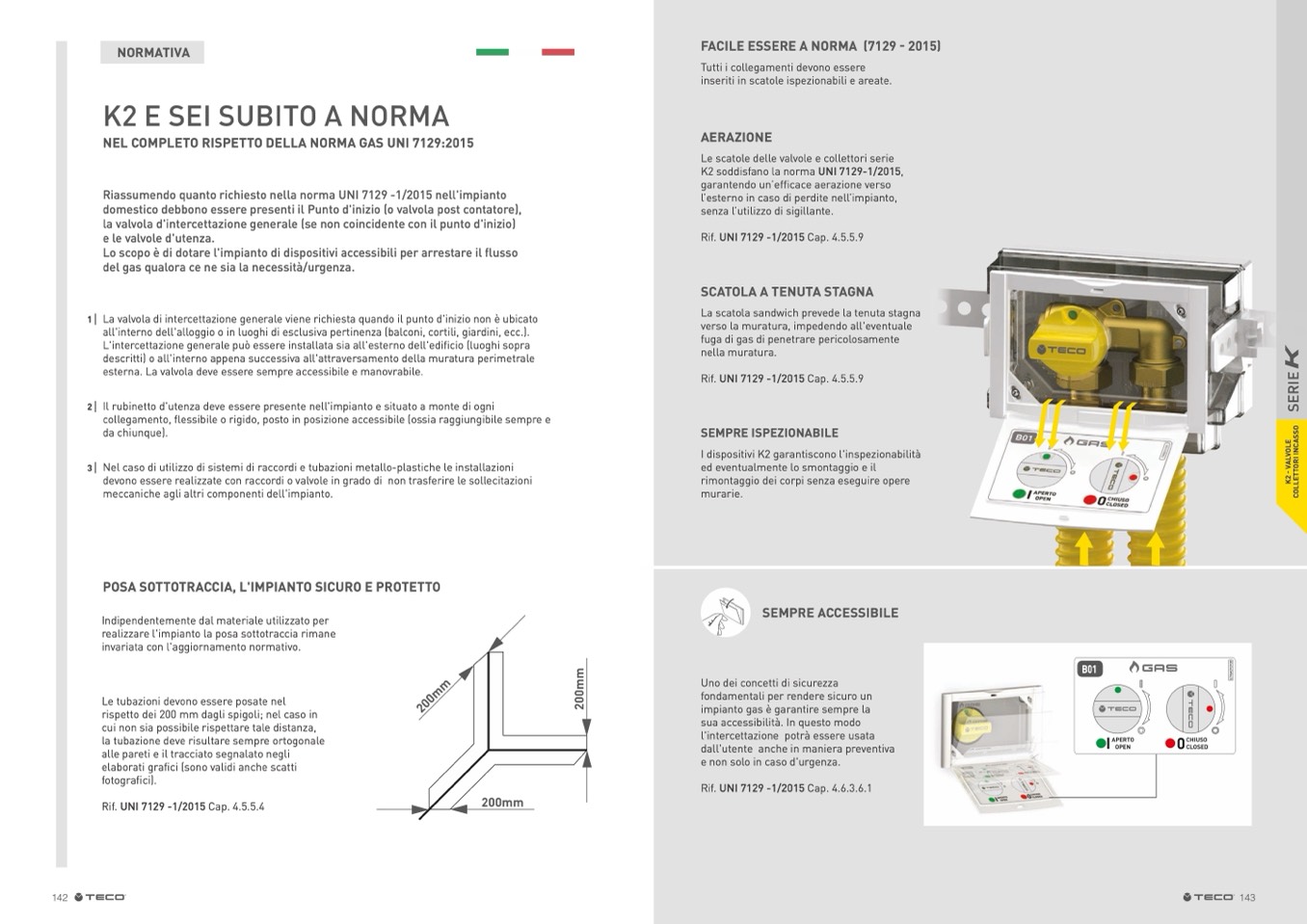 K2 soddisfano la norma UNI 7129-1/2015,