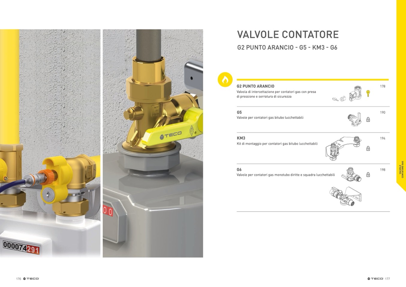 Valvole per contatori gas monotubo diritte e squadra lucchettabili