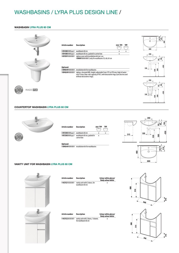 WASHBASIN LYRA PLUS 60 CM