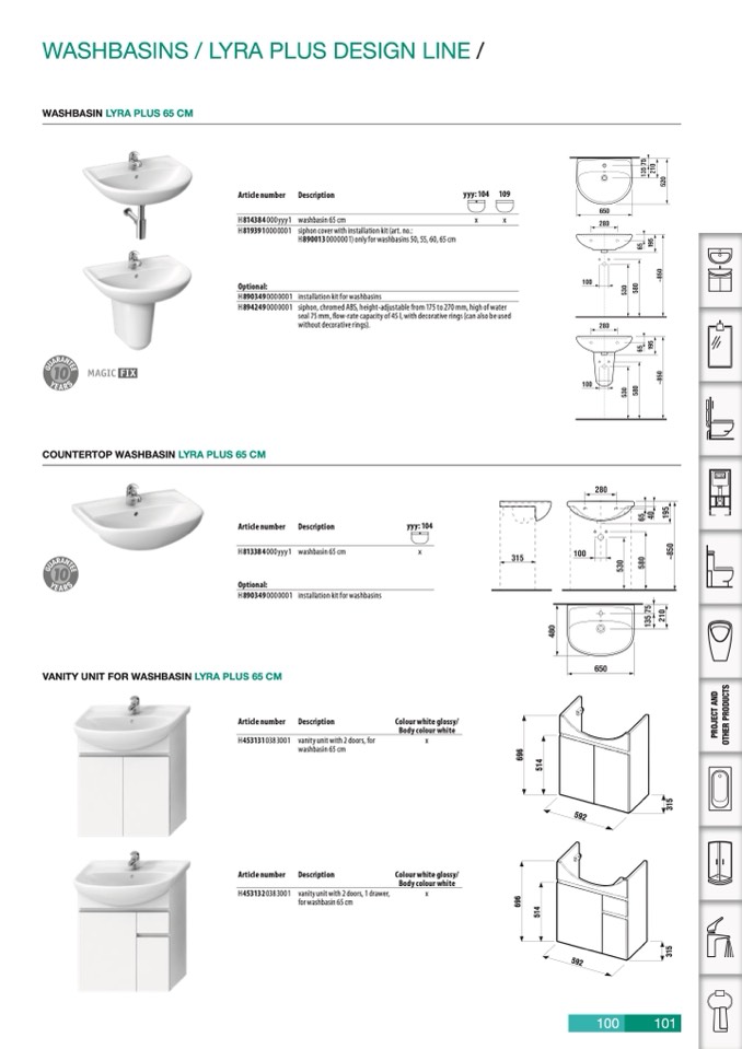 WASHBASIN LYRA PLUS 65 CM
