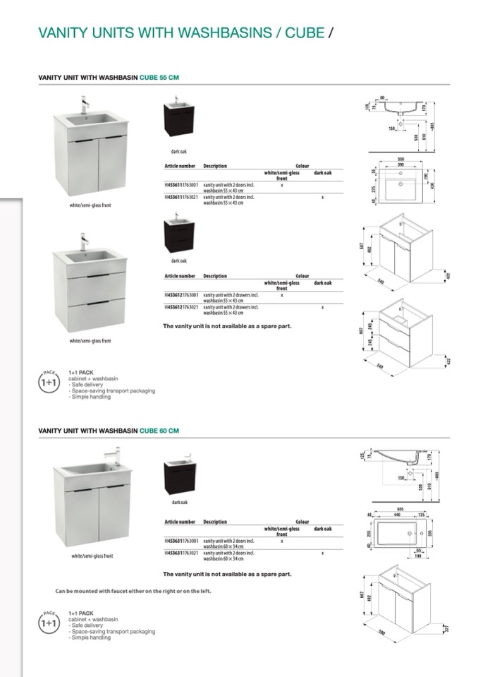 VANITY UNIT WITH WASHBASIN CUBE 60 CM