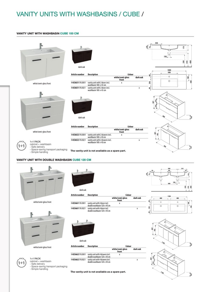 The vanity unit is not available as a spare part.