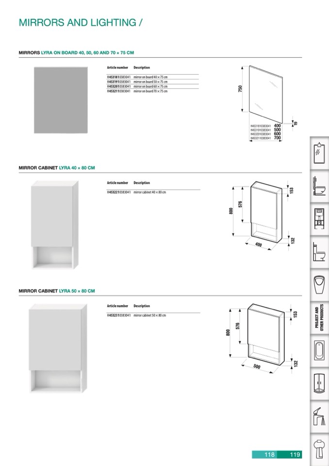 MIRRORS LYRA ON BOARD 40, 50, 60 AND 70 × 75 CM
