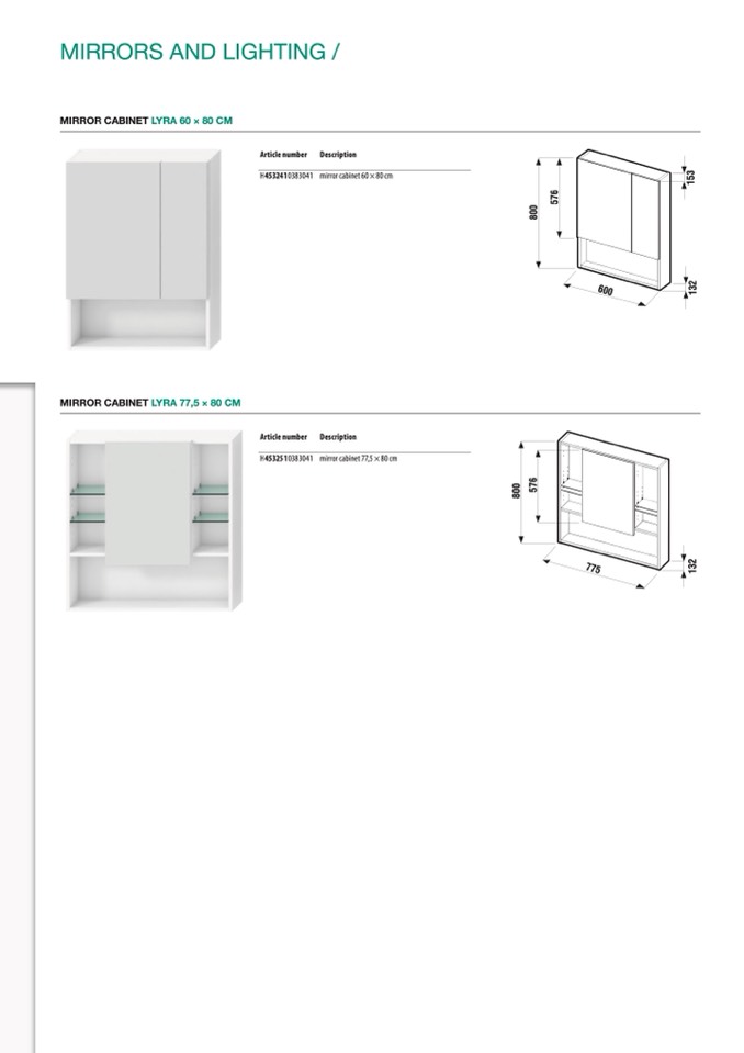 MIRROR CABINET LYRA 60 × 80 CM