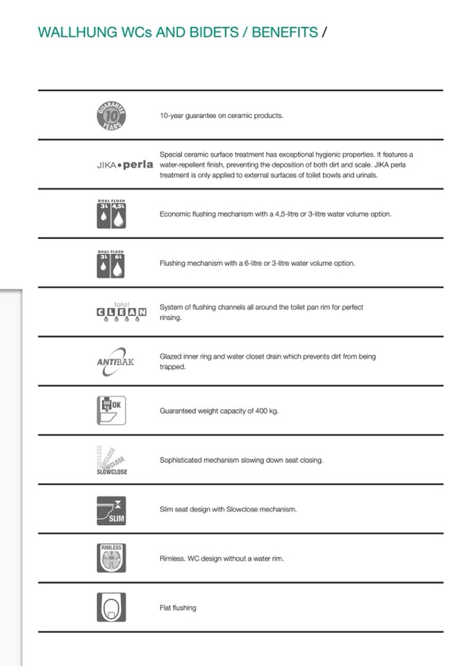 water-repellent finish, preventing the deposition of both dirt and scale. JIKA perla