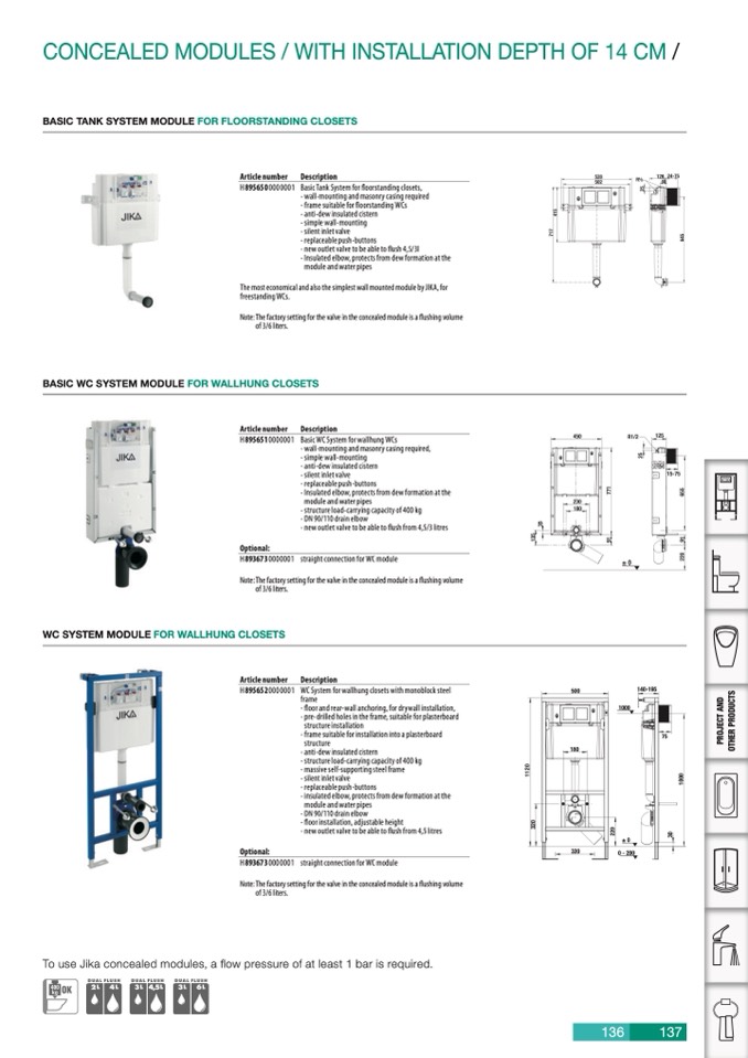 To use Jika concealed modules, a flow pressure of at least 1 bar is required.