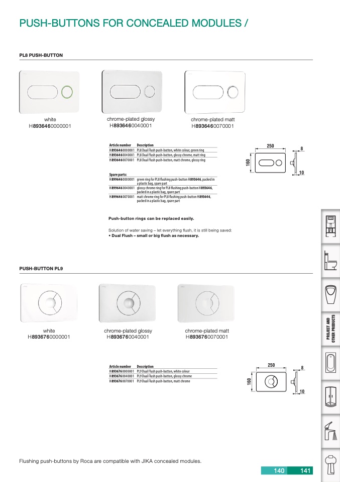 Flushing push-buttons by Roca are compatible with JIKA concealed modules.