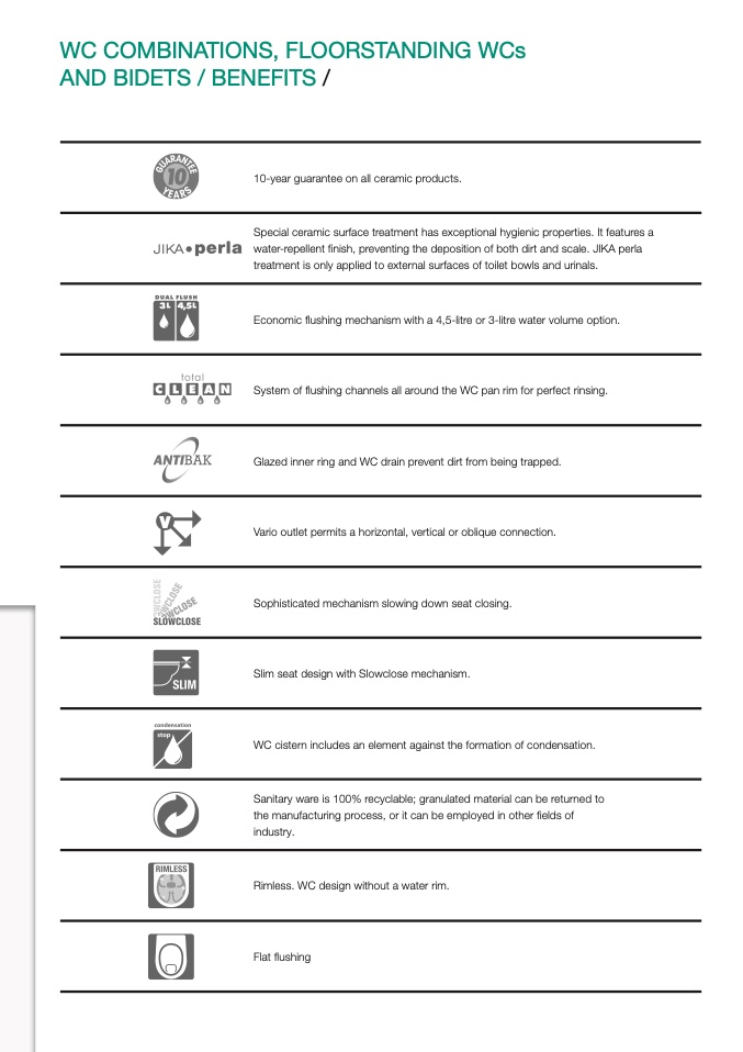 water-repellent finish, preventing the deposition of both dirt and scale. JIKA perla