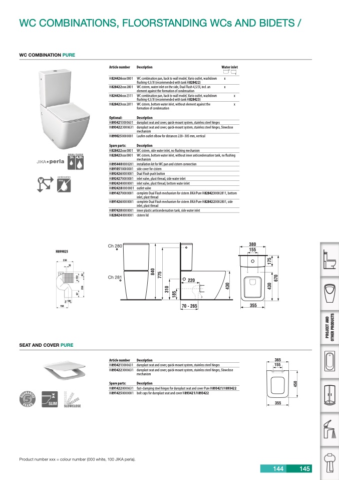 Product number xxx = colour number (000 white, 100 JIKA perla).