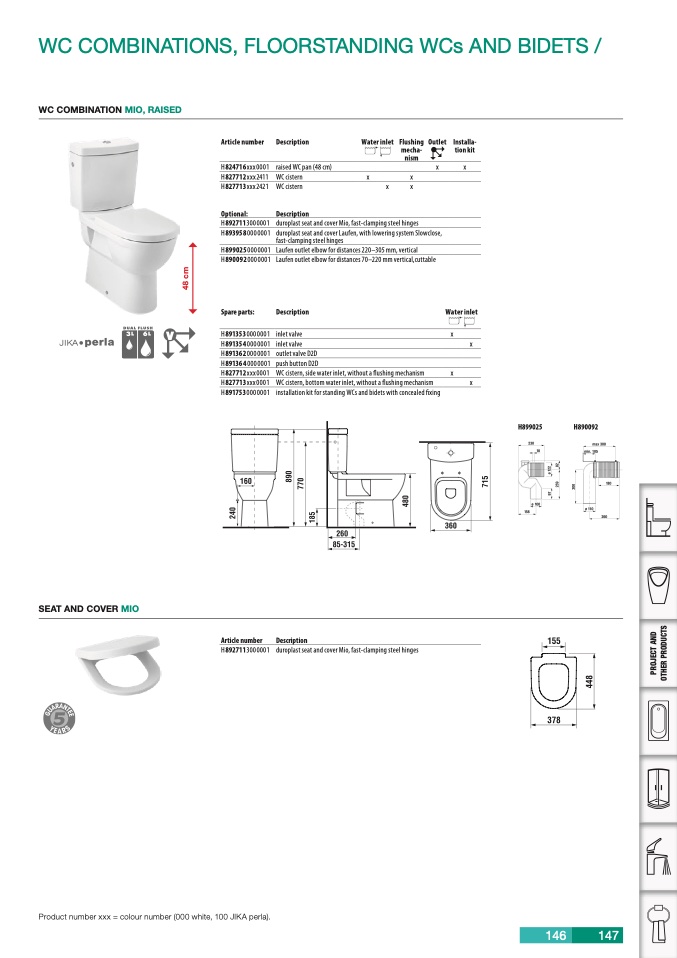 Product number xxx = colour number (000 white, 100 JIKA perla).