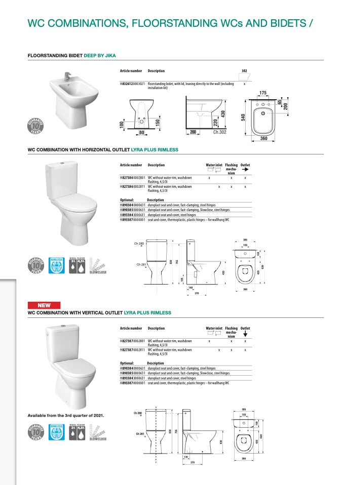 WC COMBINATION WITH VERTICAL OUTLET LYRA PLUS RIMLESS