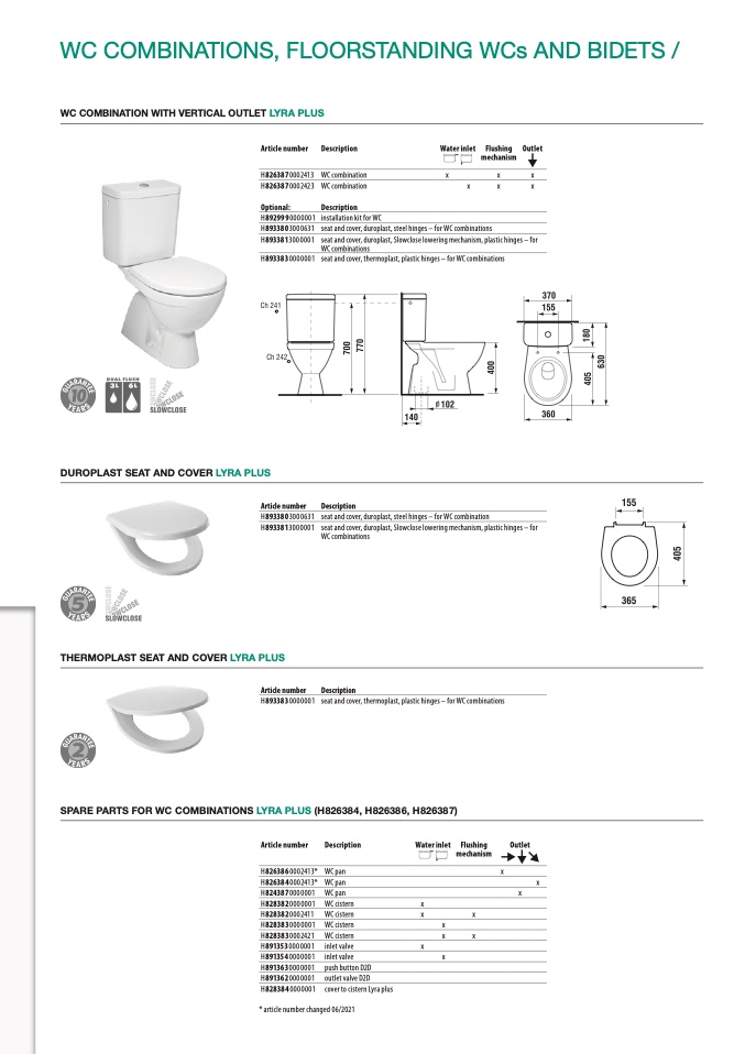 SPARE PARTS FOR WC COMBINATIONS LYRA PLUS (H826384, H826386, H826387)