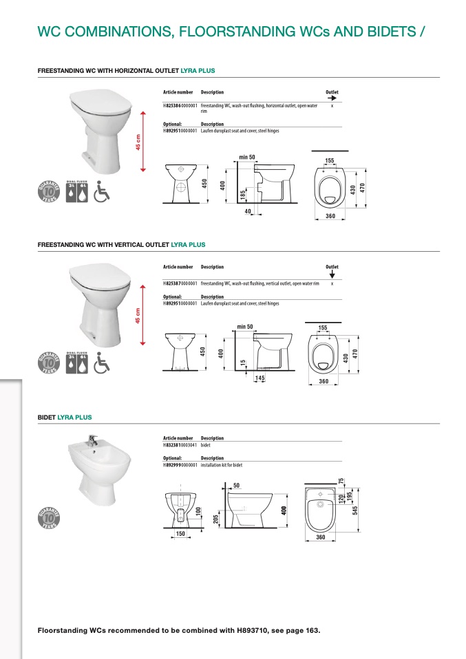 Floorstanding WCs recommended to be combined with H893710, see page 163.