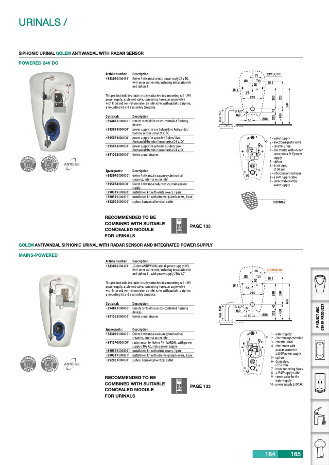 H8430700004901 „Golem ANTIVANDAL urinal, power supply 24V,