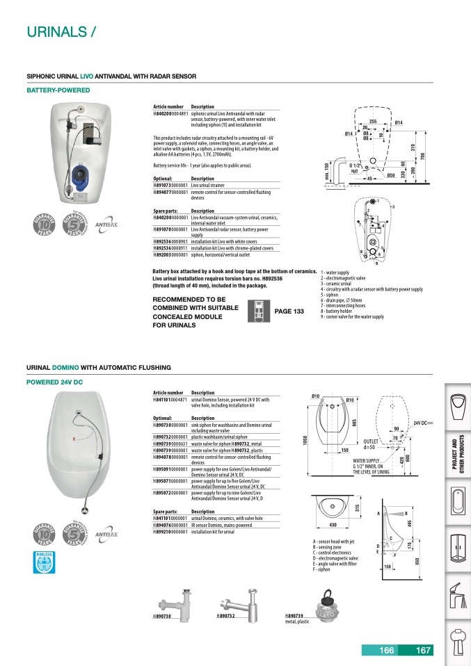H8402000004891 siphonic urinal Livo Antivandal with radar