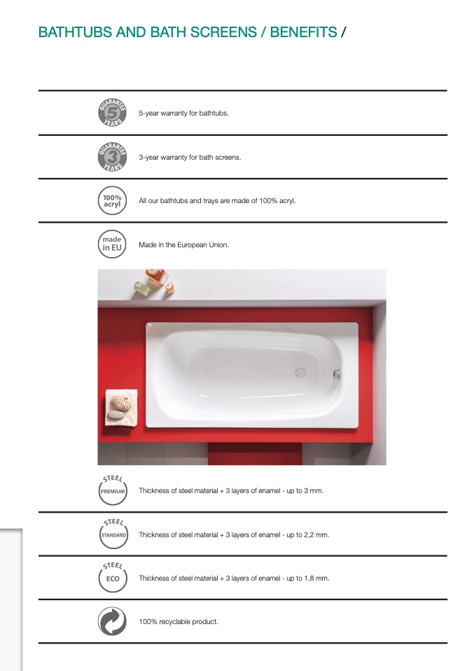 All our bathtubs and trays are made of 100% acryl.