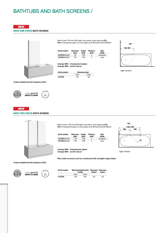 6 mm transparent glass or arctic glass and JIKA perla GLASS finish.