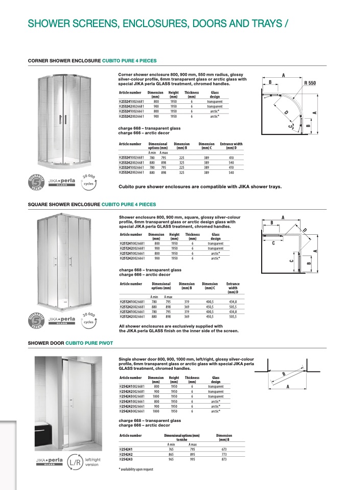 Cubito pure shower enclosures are compatible with JIKA shower trays.