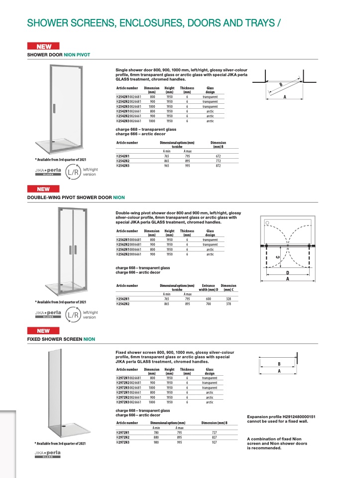 profile, 6mm transparent glass or arctic glass with special JIKA perla