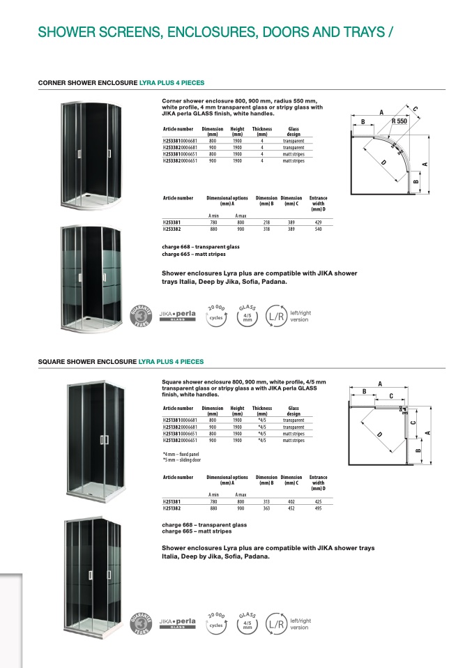 Shower enclosures Lyra plus are compatible with JIKA shower trays