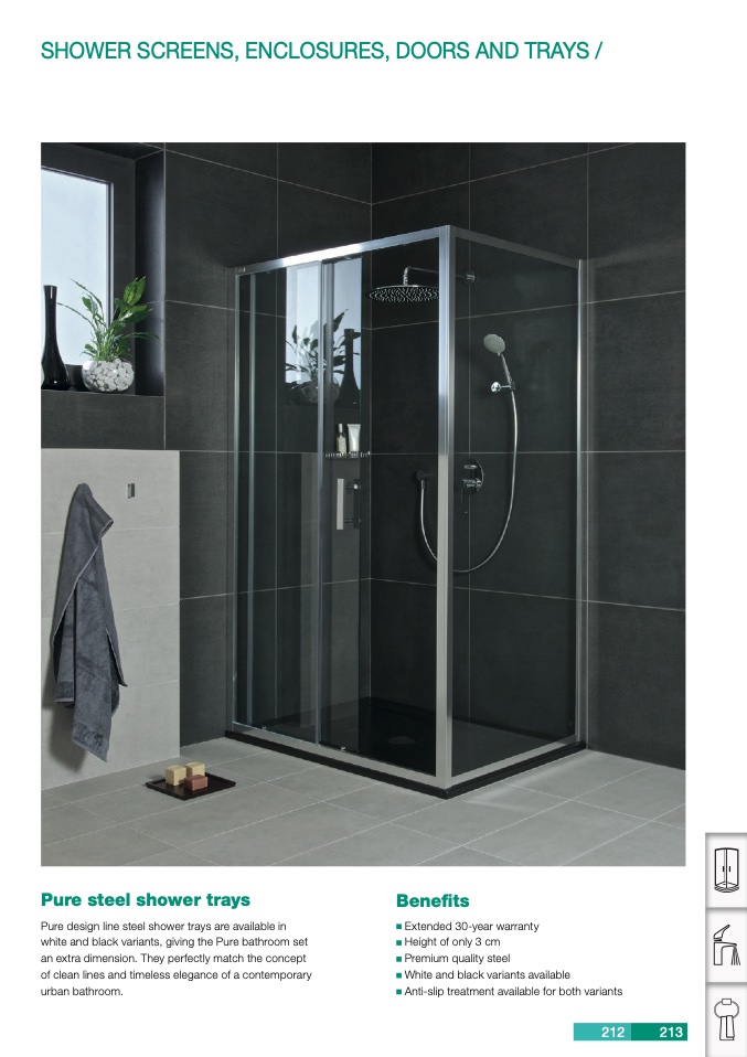 Pure design line steel shower trays are available in