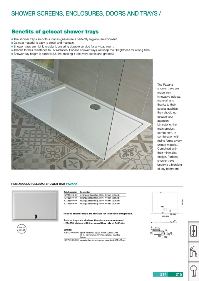 RECTANGULAR GELCOAT SHOWER TRAY PADANA