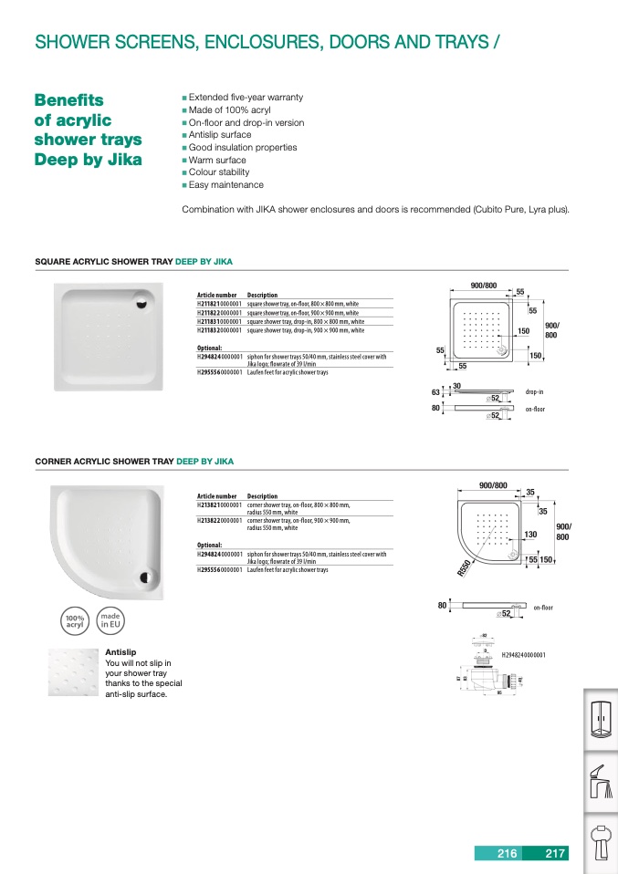 SQUARE ACRYLIC SHOWER TRAY DEEP BY JIKA