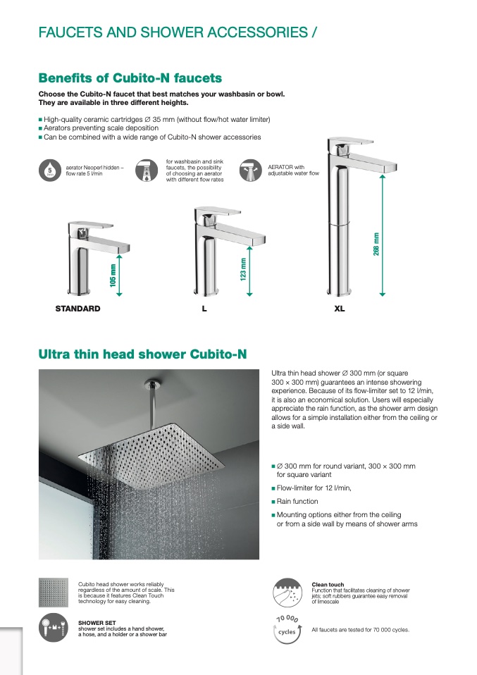 All faucets are tested for 70 000 cycles.