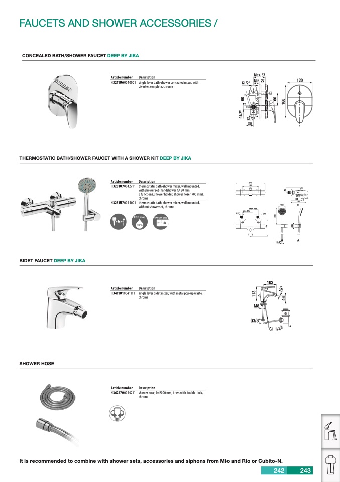It is recommended to combine with shower sets, accessories and siphons from Mio and Rio or Cubito-N.