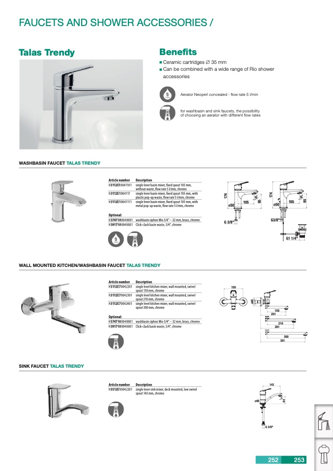 WALL MOUNTED KITCHEN/WASHBASIN FAUCET TALAS TRENDY