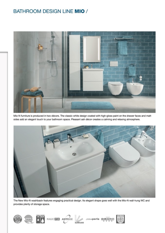 The New Mio-N washbasin features engaging practical design. Its elegant shape goes well with the Mio-N wall-hung WC and