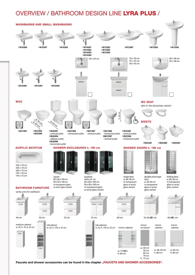 Faucets and shower accessories can be found in the chapter „FAUCETS AND SHOWER ACCESSORIES“.
