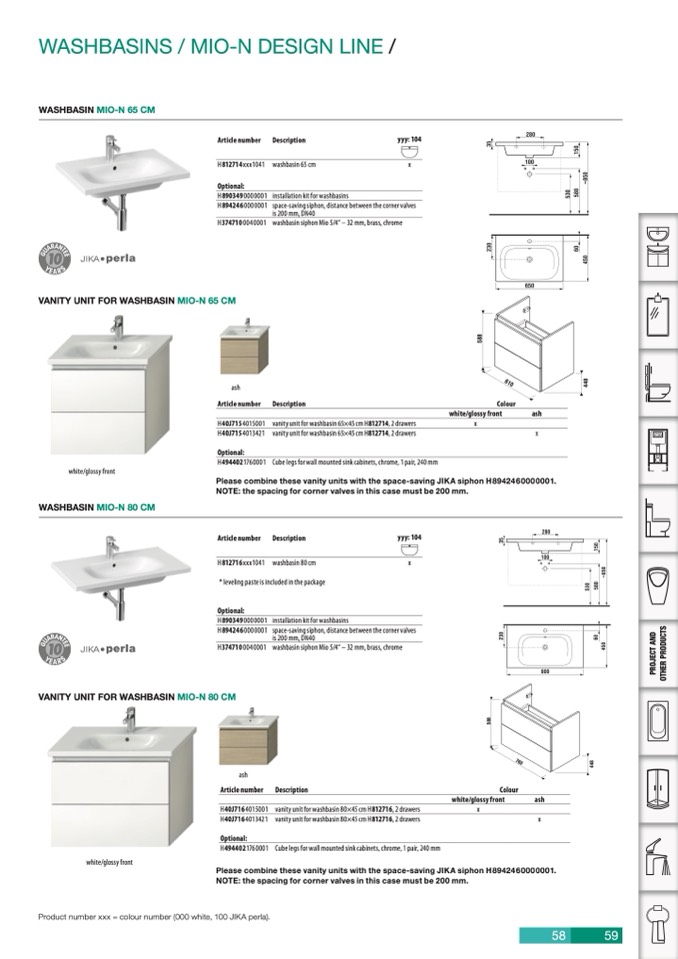 Product number xxx = colour number (000 white, 100 JIKA perla).