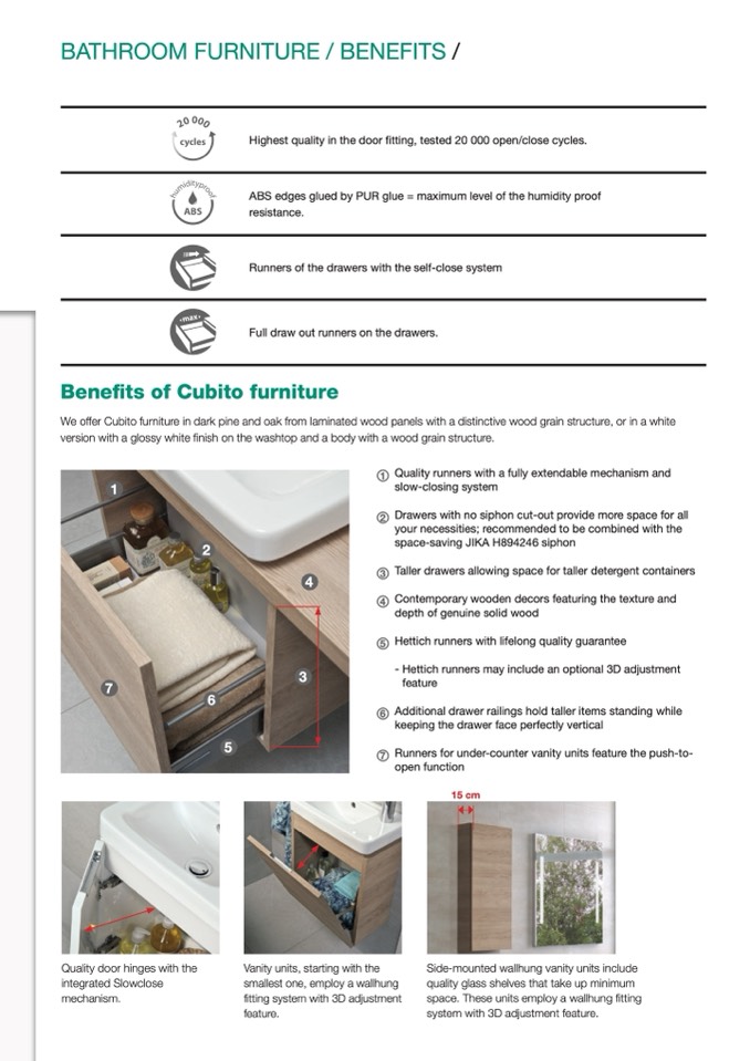We offer Cubito furniture in dark pine and oak from laminated wood panels with a distinctive wood grain structure, or in a white