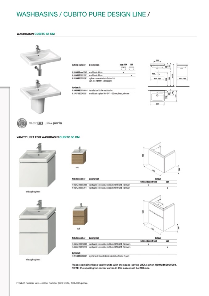 Please combine these vanity units with the space-saving JIKA siphon H8942460000001.