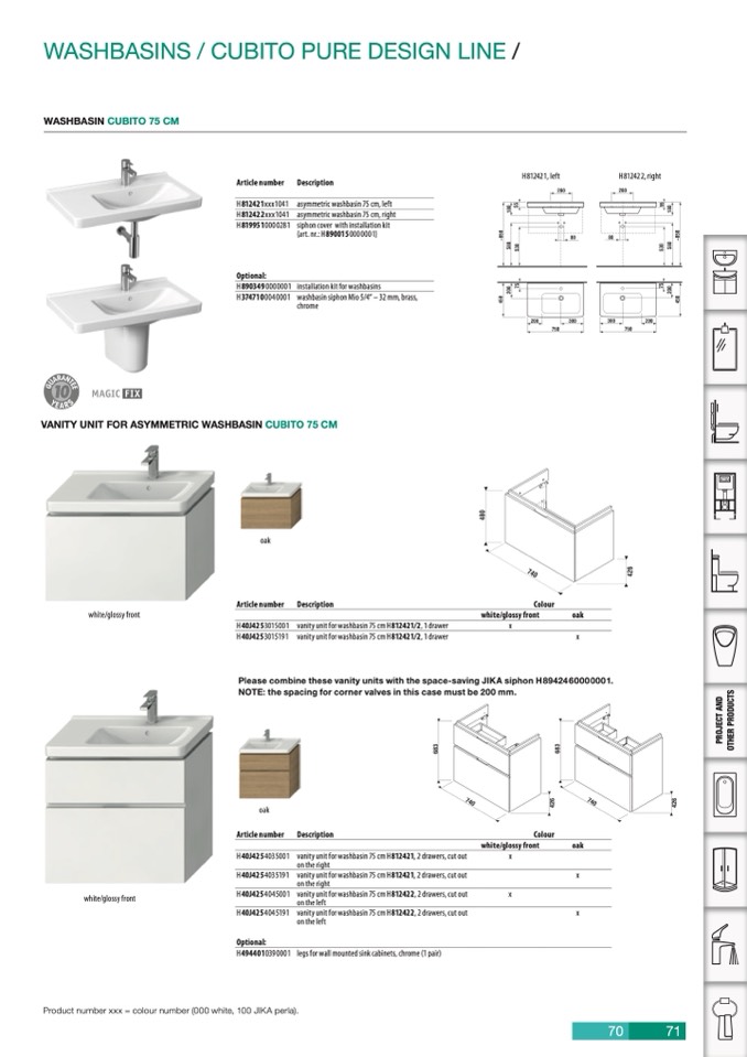 Please combine these vanity units with the space-saving JIKA siphon H8942460000001.