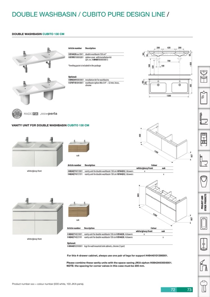 Please combine these vanity units with the space-saving JIKA siphon H8942460000001.
