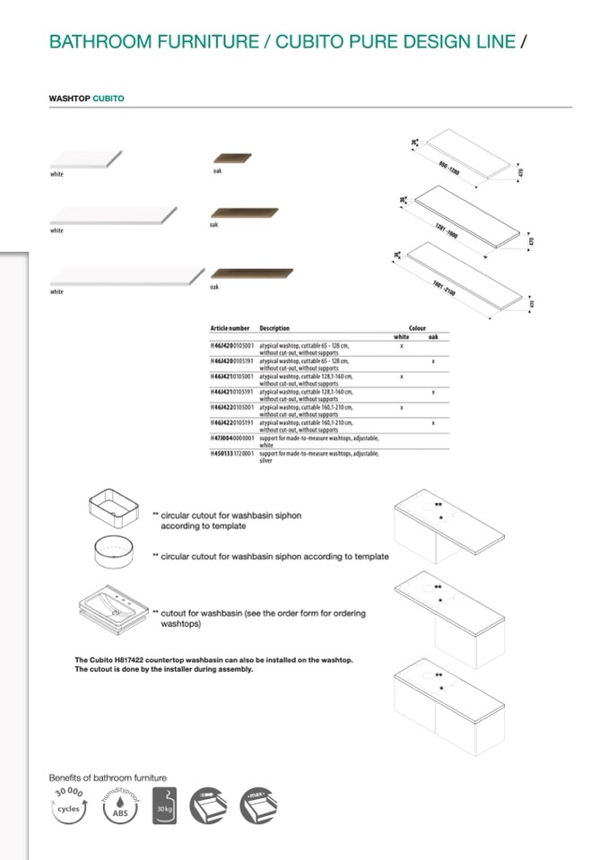 The Cubito H817422 countertop washbasin can also be installed on the washtop.