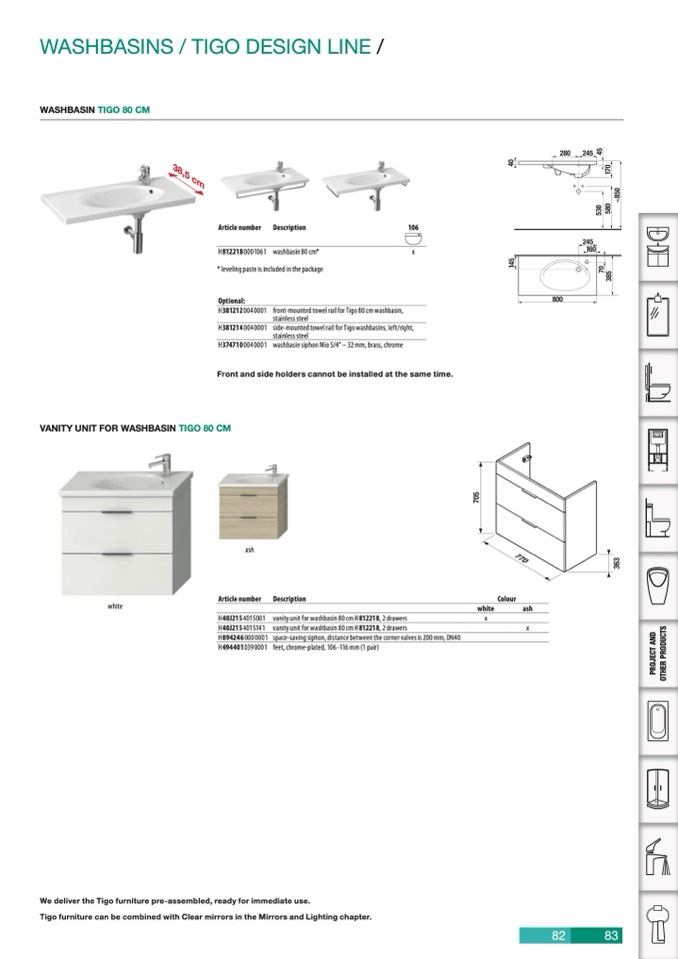 WASHBASIN TIGO 80 CM