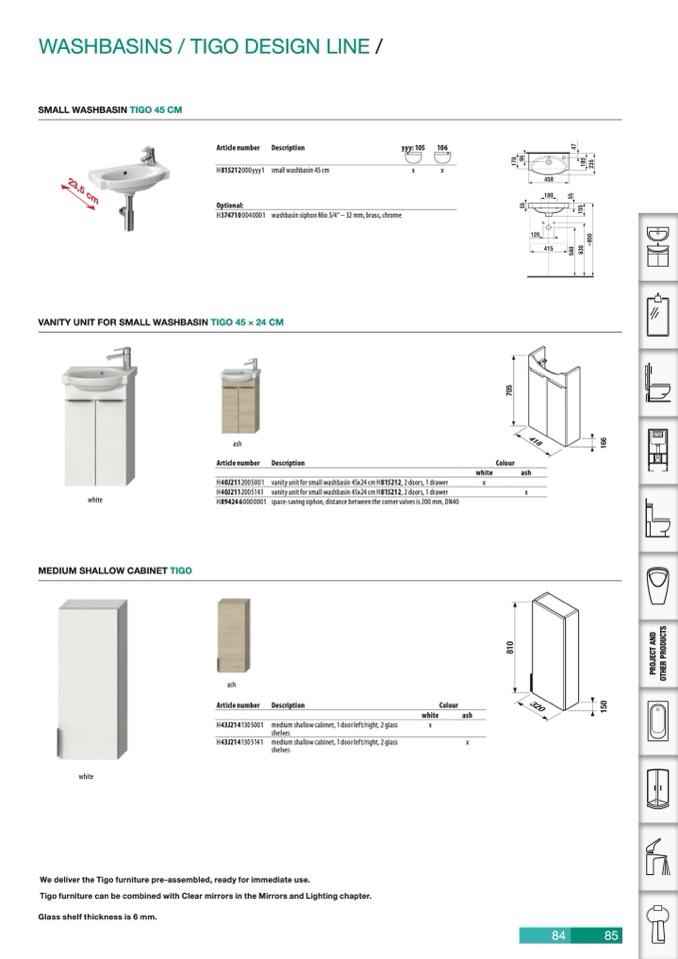 Tigo furniture can be combined with Clear mirrors in the Mirrors and Lighting chapter.