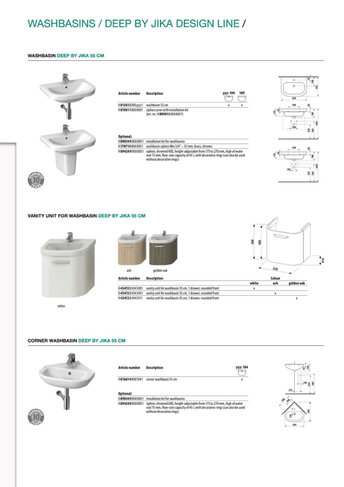 VANITY UNIT FOR WASHBASIN DEEP BY JIKA 55 CM