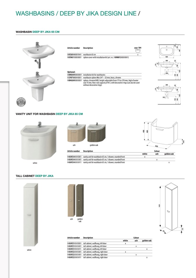 VANITY UNIT FOR WASHBASIN DEEP BY JIKA 65 CM