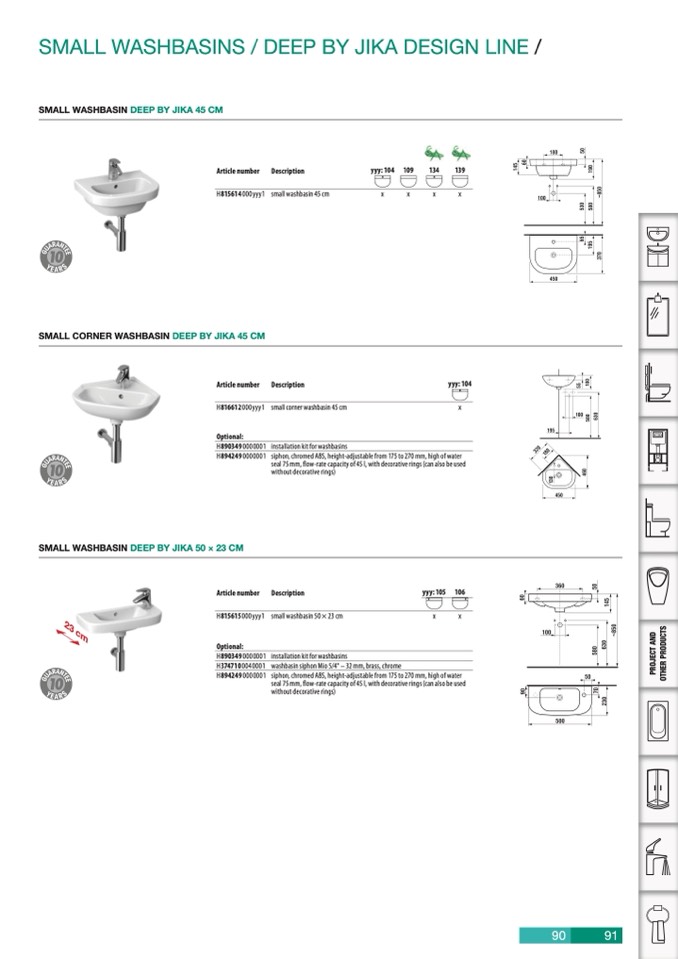SMALL WASHBASIN DEEP BY JIKA 45 CM
