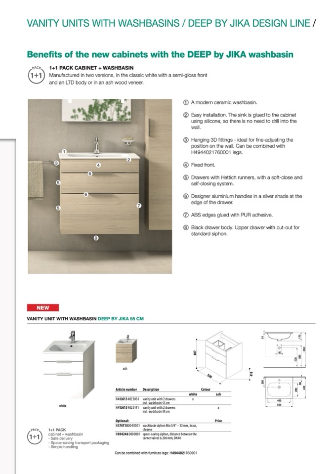 VANITY UNIT WITH WASHBASIN DEEP BY JIKA 55 CM