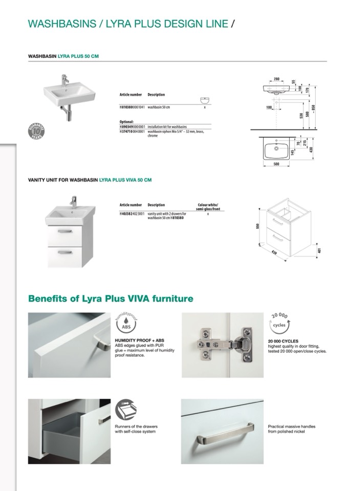 WASHBASIN LYRA PLUS 50 CM