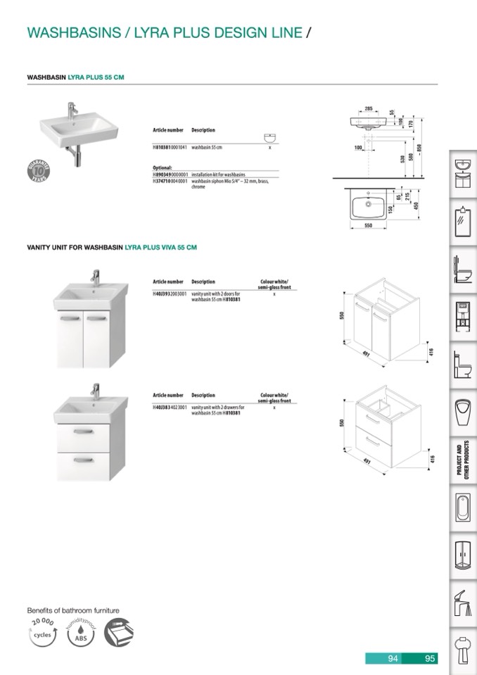 VANITY UNIT FOR WASHBASIN LYRA PLUS VIVA 55 CM